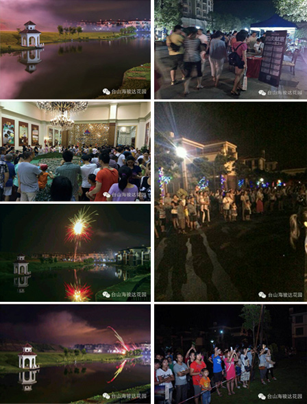 2014年10月1日,臺山海駿達花園舉行了國慶煙花匯演活動。活動當晚人頭攢動,超過5000人次的市民到場觀看了此次煙花匯演,璀璨的煙花也一次次點燃大家的熱情。市民對掃二維碼拿禮品的活動熱情高漲,商家展位前的美食及特色商品吸引了大多數市民駐足。手拿應節風車,品嘗特色美食,欣賞璀璨煙花,置身自然美景,參與活動的市民都說太享受了。