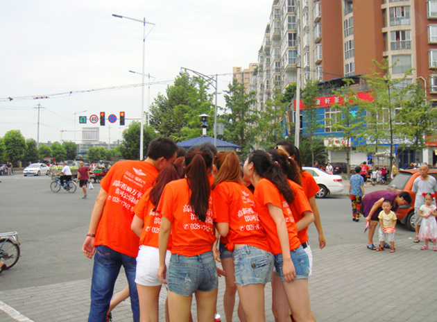今晨, 郫縣街頭驚現(xiàn)《小蘋果》的又一版本,海駿達?蜀都1號“幸福青春 活力快閃”活動在郫縣全城人流集中火爆進行!項目的置業(yè)顧問統(tǒng)一著裝,橙色T恤加短褲,帥哥美女齊上陣, 隨著洗腦神曲《小蘋果》的開唱,置業(yè)顧問熱情洋溢地啟動舞步,在清晨的郫縣街頭形成一道青春靚麗的風景線,引得市民紛紛駐足圍觀!